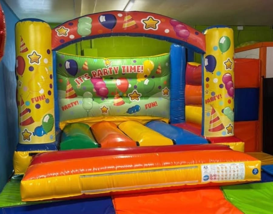 Make your next event unforgettable. Book the 12 ft x 12 ft Multicoloured Party time Mega Package with pg bouncy castle hire today and deliver nonstop fun for kids and parents alike. 🎈